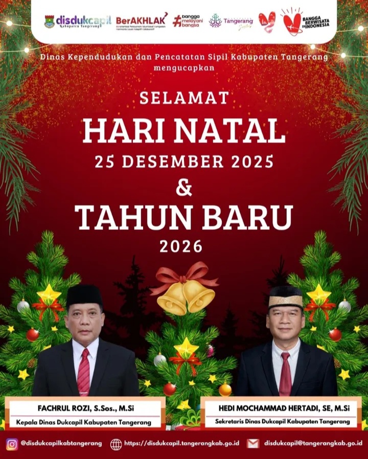 Dinas Kependudukan Dan Catatan Sipil (DISDUKCAPIL) Kabupaten Tangerang Mengucapkan admin infodesakitaDesember 25, 2025Desember 25, 2025120 Dilihat Post Views: 120 Pos terkaitIntan Nurul Hikmah Ketua DPD PARTAI GOLKAR KABUPATEN TANGERANG MENGUCAPKANH.Moch.Maedyal Rasyid BupstiTangerang Resmikan Koperasi Kelurahan Merah Putih Curug Kulon,CSR Dari PIK 2,100 JutaAPDESI Kecamata Cikupa Kabupaten Tangerang MengucapkanBupati Tangerang Tinjau Banjir di Jayanti, Masak dan Makan Bersama Warga di Dapur UmumIntan Nurul Hikmah : Pelaksanaan Program Gerebek Posyandu Tulip 5 Jambe Perkuat Layanan Kesehatan Ibu dan AnakTugu Titik Nol Kabupaten Tangerang Diresmikan sebagai Zona Literasi Digital