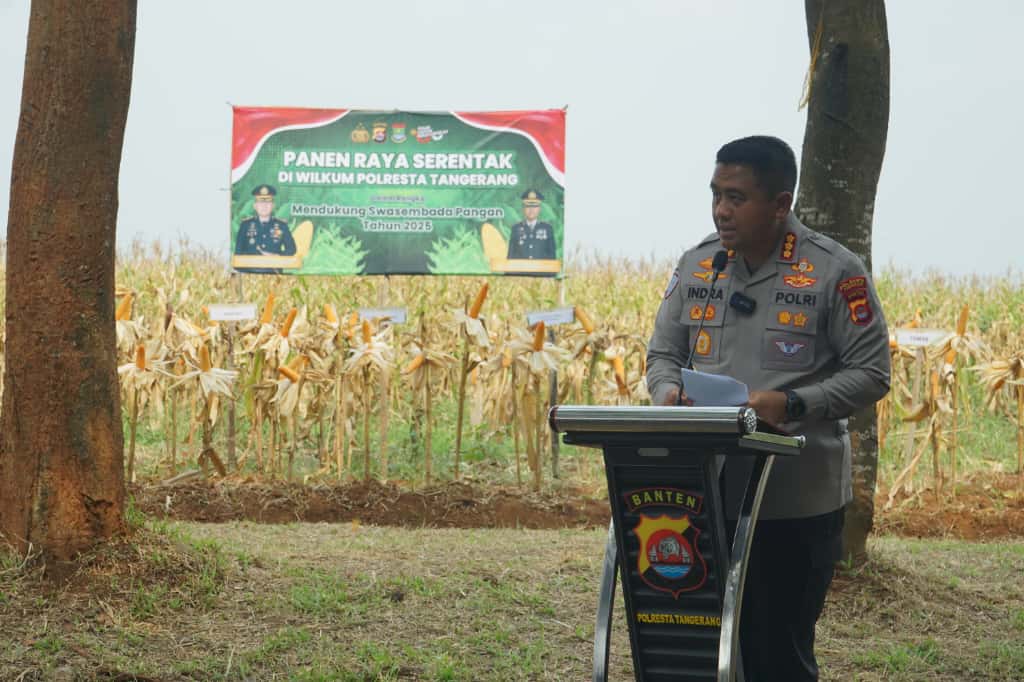 Tangerang//Infodesakita – Kapolresta Tangerang Kombes Pol Andi Muhammad Indra Waspada Amirullah menghadiri kegiatan Panen Jagung Hibrida Serentak Kuartal III Program Ketahanan Pangan di Kampung Batu Nunggul, Kelurahan Sukatani, Kecamatan Rajeg, Kabupaten Tangerang, Sabtu (27/9/2025).