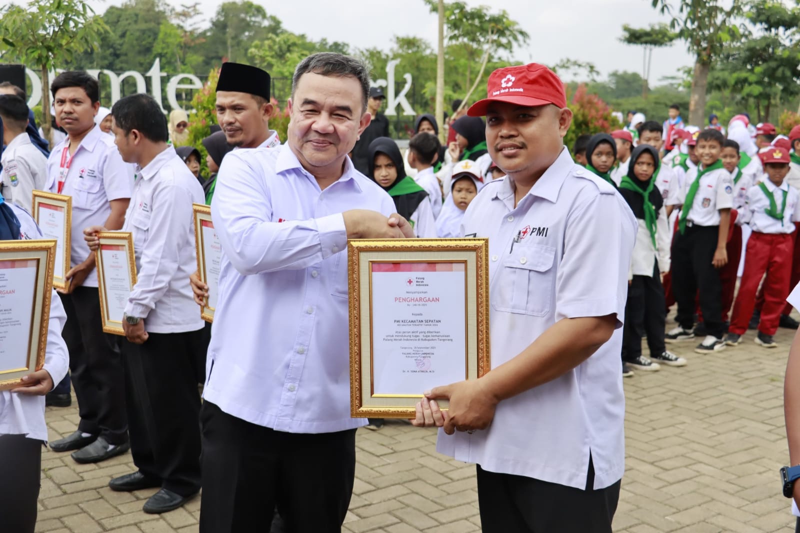 TANGERANG//INFODESAKITA – Perayaan HUT ke-80 PMI tingkat Kabupaten Tangerang yang juga merupakan rangkaian dari HUT ke-393 Kabupaten Tangerang berlangsung meriah di Taman Relawan PMI, Kecamatan Solear, Minggu (28/09/25).
