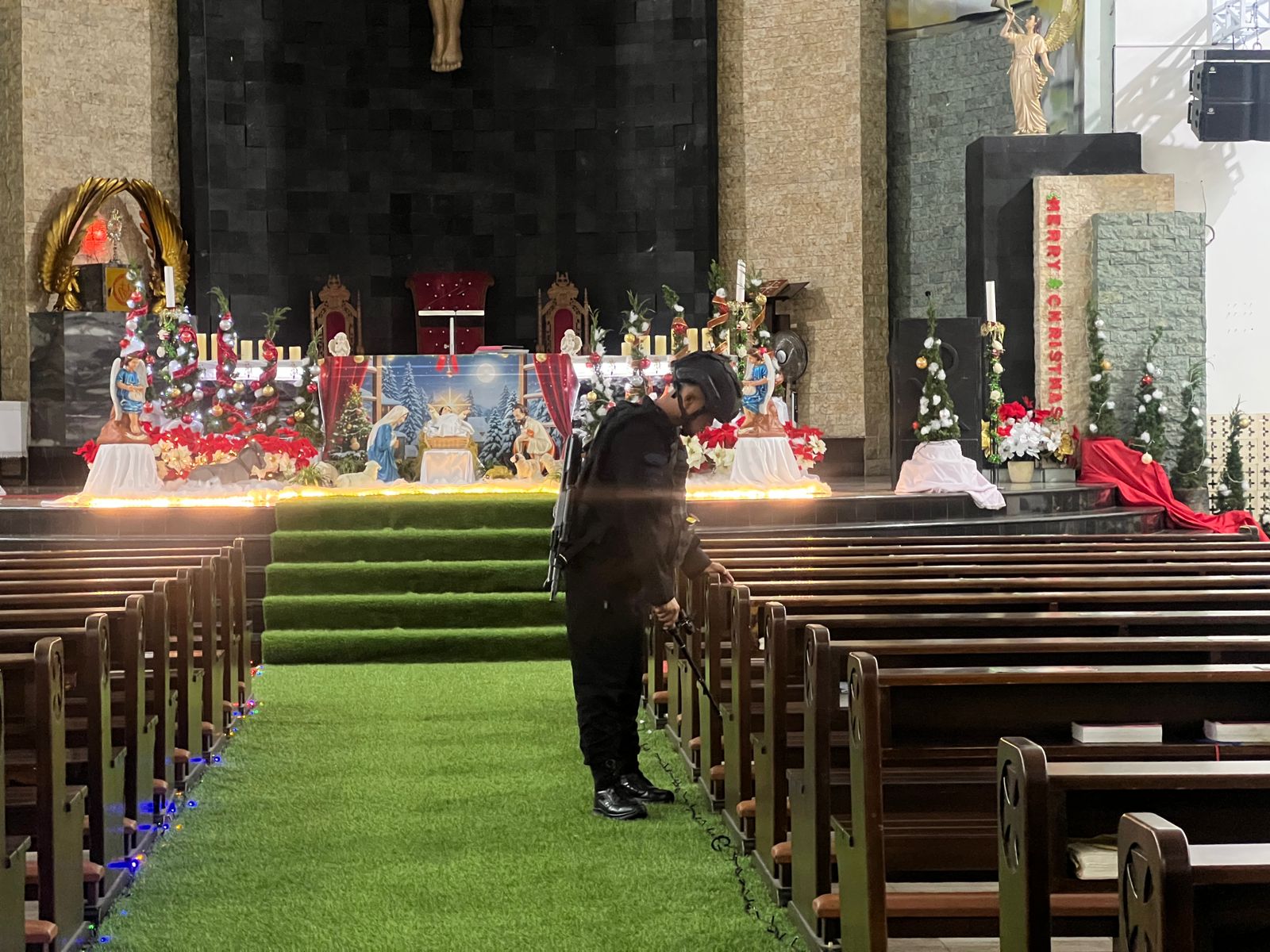 Jelang Ibadah Tutup Tahun, Sat Brimob Polda Banten Sterilisasi Gereja Bersama Citra Raya