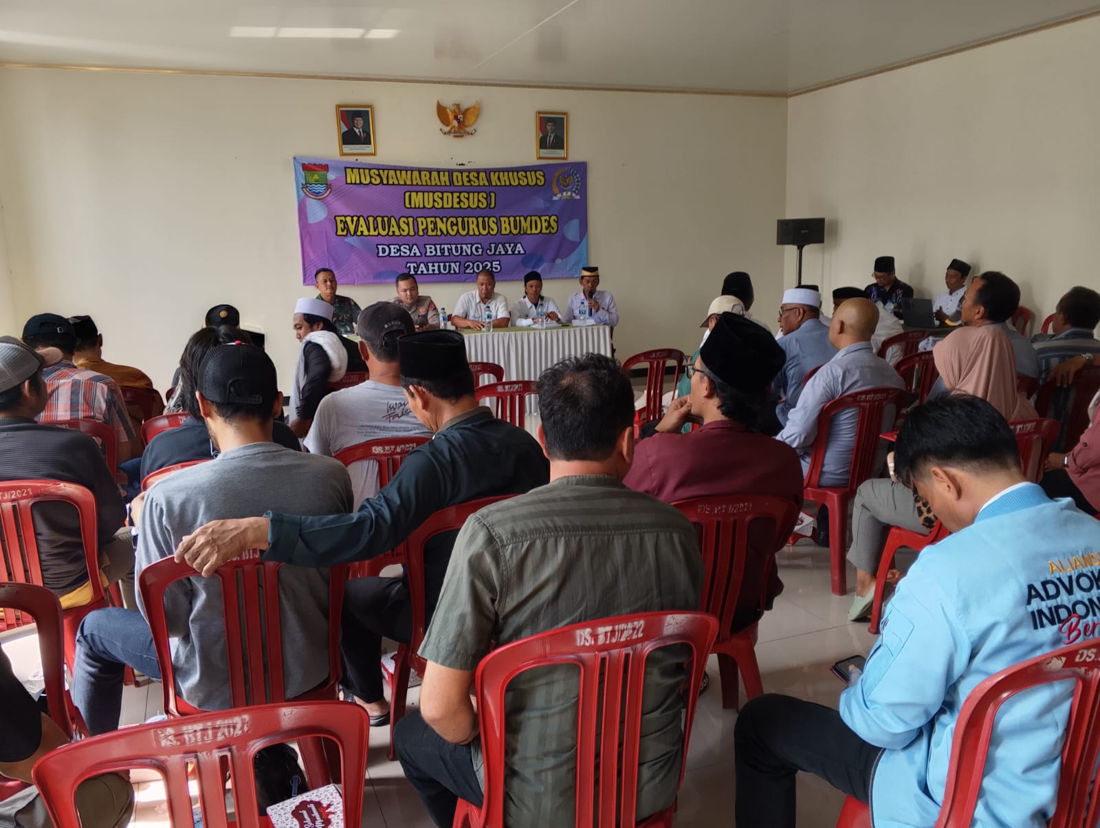 Tangerang//Infodesakita.my.id – Pemerintah Desa Bitung Jaya, Kecamatan Cikupa, Kabupaten Tangerang menggelar Musyawarah Desa Khusus (Musdesus) dengan agenda evaluasi kepengurusan Badan Usaha Milik Desa (BUMDes) tahun 2025, Kamis (11/9/2025).