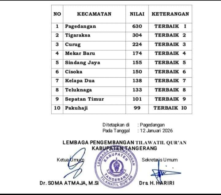 Pagedangan//Infodesakita — Musabaqah Tilawatil Qur’an (MTQ) ke-56 Kabupaten Tangerang baru saja usai dan telah banyak menghasilka qori qoriah sekabupateb tangerang yang akan mewakili kabupaten tangerang di tingkat provinsi Banten di Kota Tangerang Selatan di tahun 2026.