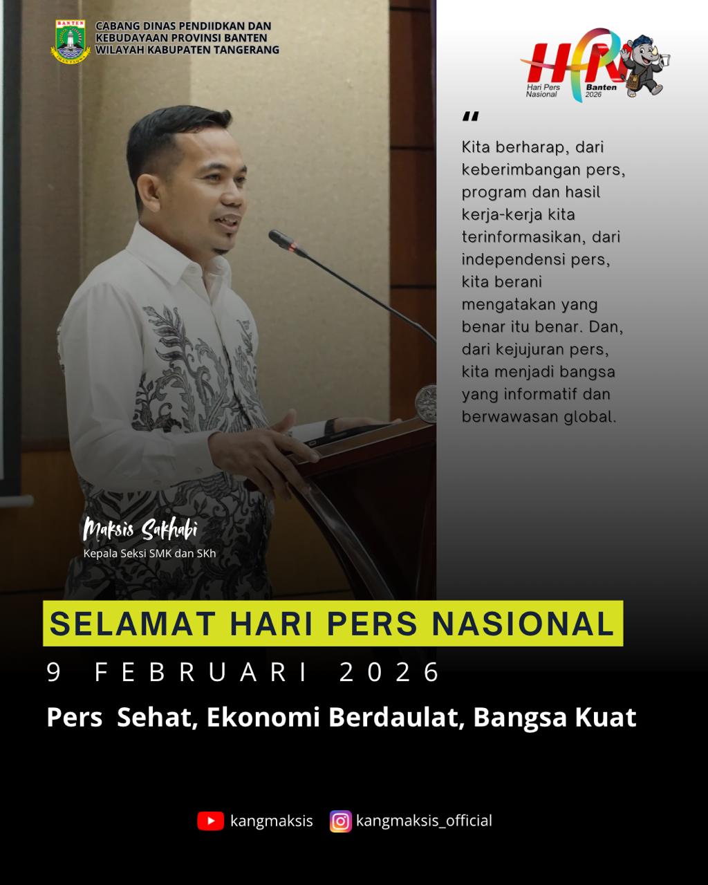 Kepala Seksi SMK Dan Skh Dinas Pendidikan Provinsi Banten Mengucapkan Hari Pers Nasional 09 Pebuary 2026 admin infodesakitaFebruari 9, 2026Februari 9, 2026101 Dilihat Post Views: 101 Pos terkaitSusuri Bantaran Kali Cirarab, Bupati Tangerang Pastikan Normalisasi dan Penurapan Akan Segera DilakukanLurah Bojong Nangka Memberi Apresiasi Di Acara Pers NasionalBadan Pendapatan Daerah Kabupaten Tangerang Mengucapkan Hari Pers Nasional 09 Pebuary 2026Bupati Tangerang Tutup ASSKAT League Season 3Pemerintah Kelurahan Pakulonan Barat Kecamatan Kelapa Dua Kabupaten Tangerang Mengucapkan Hari Pers Nasional 2026Bupati Tangerang Apresiasi Eksistensi 27 Tahun Koperasi Al-Husna