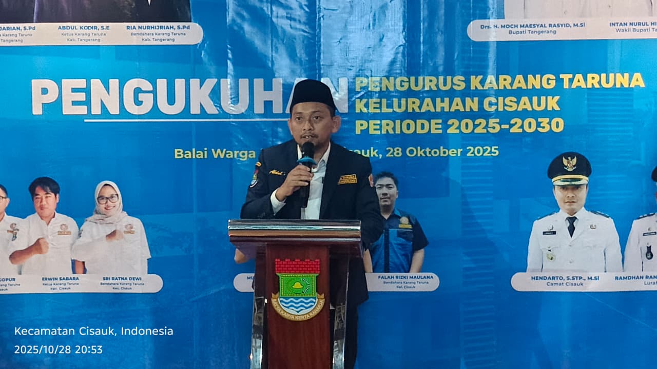 Pelantikan dilakukan langsung oleh Lurah Cisauk, yang secara resmi mengukuhkan kepengurusan Karang Taruna Kelurahan Cisauk Masa Bakti 2025–2030.