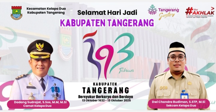 Pemerintahan Kecamatan Kelapa Dua Kabupaten Tangerang Mengucapkan admin infodesakitaOktober 10, 2025Oktober 10, 202585 Dilihat Post Views: 85 Pos terkaitKeluarga Besar Polresta Tangerang MengucapkanJumat Keliling, Bupati Tangerang Resmikan Masjid Al Wustho Perum Taman Buah 2 KutabumiPerangi Narkoba, BNK Tangerang Gandeng Kepala Desa Wujudkan “Desa BersinarAkhirnya Tim Bola Basket Porkab Sindang Jaya Di Kalahkan oleh Tim basket Kelapa DuaH.Moch.Maesyal Rasyid Bupati Tangerang Buka Workshop Evaluasi Pengelolaan Keuangan Dan Pembangunan DesaBupati Tangerang Tinjau Pembangunan Pompa Air di Bencongan Kelapa Dua
