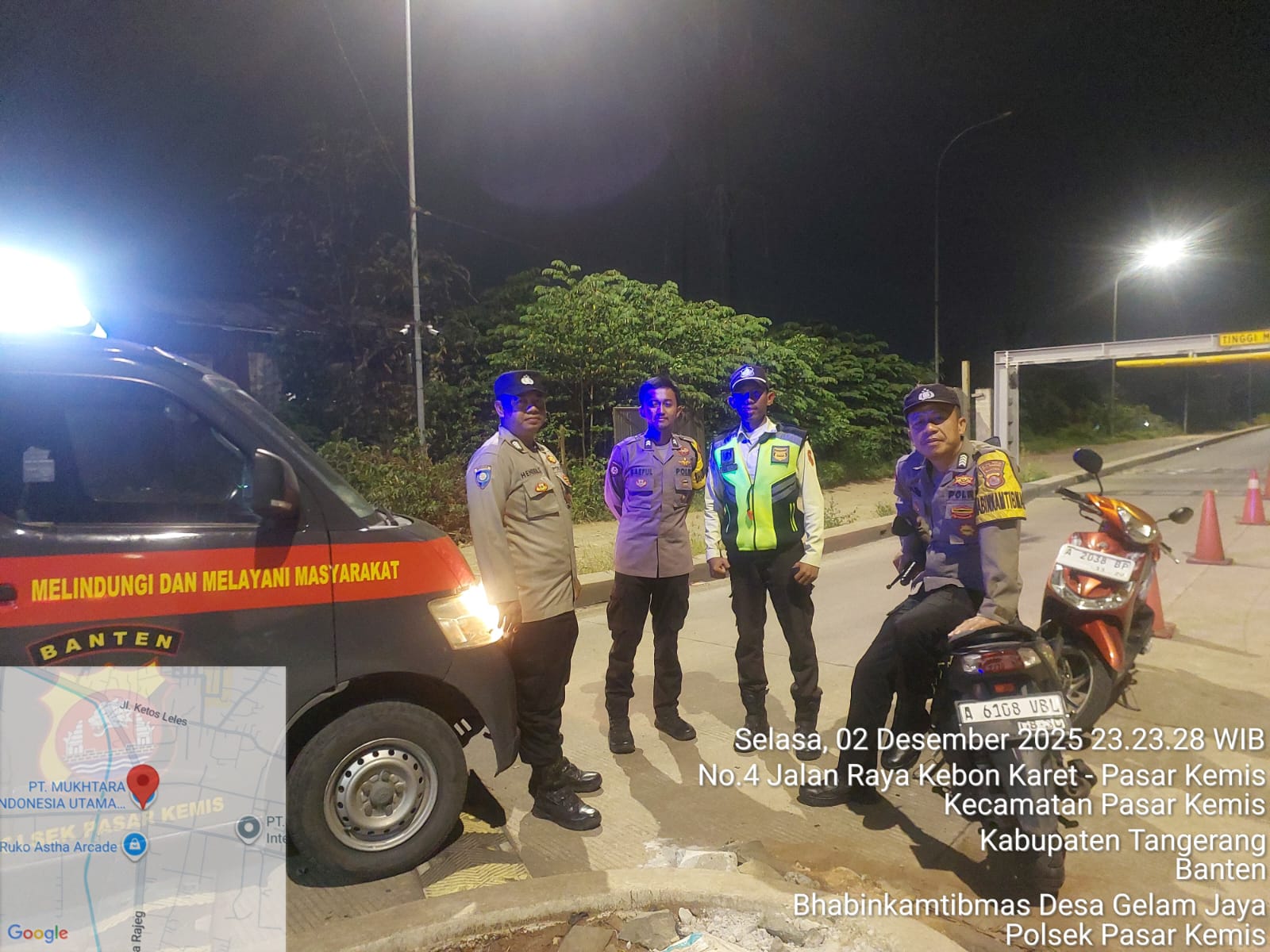 Tangerang//Infodesakita – Polsek Pasar Kemis melaksanakan Patroli Mobile dan patroli kewilayahan pada Selasa malam (02/12/2025) pukul 23.30 WIB sebagai bagian dari Ops Cipkon untuk mengantisipasi 3C, premanisme, balap liar, geng motor, tawuran remaja, dan gangguan kamtibmas lainnya.